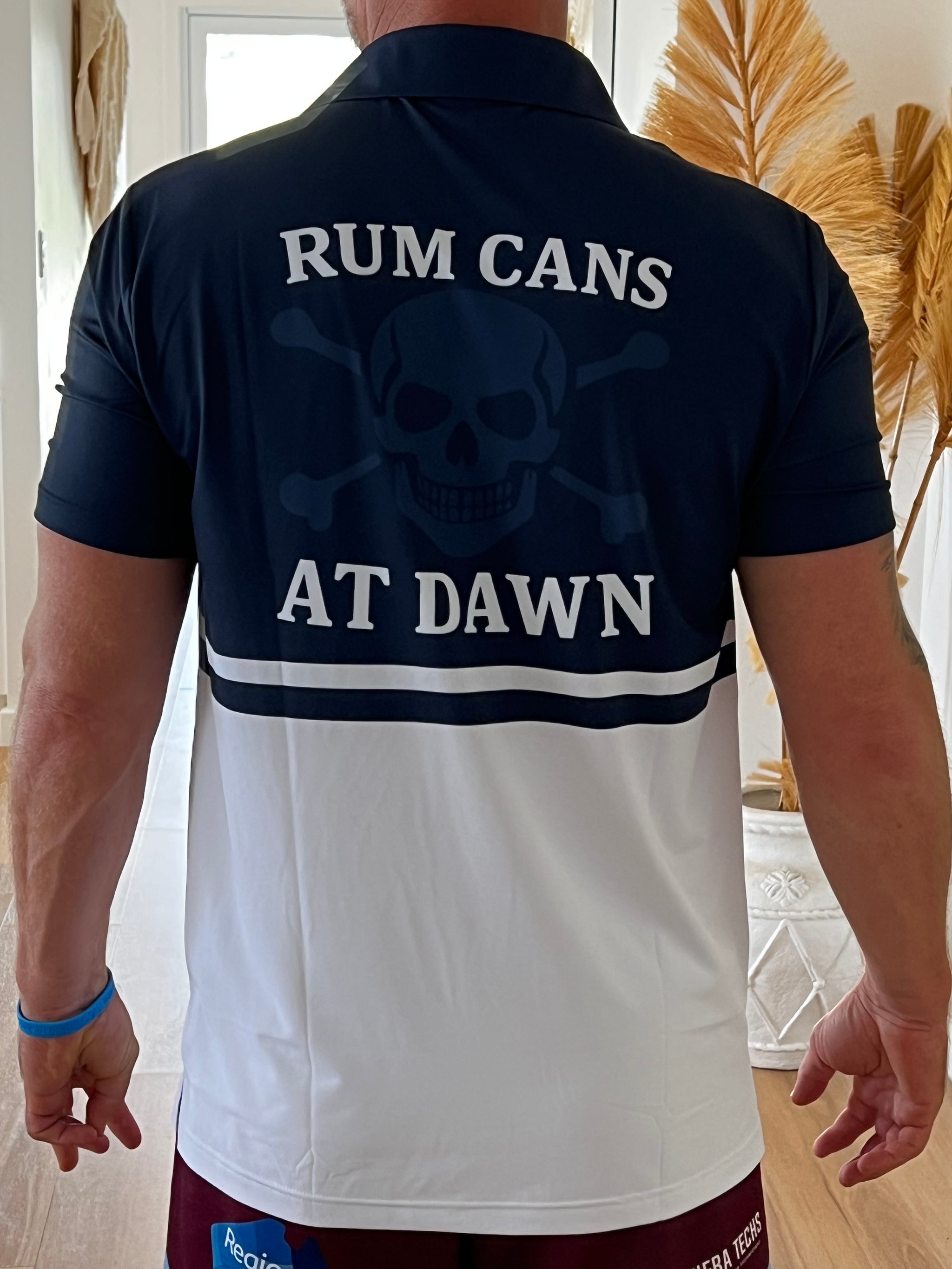 BODHI SURF RUM CANS AT DAWN GOLF POLO NAVY WHITE BREATHABLE SPORTS FIT