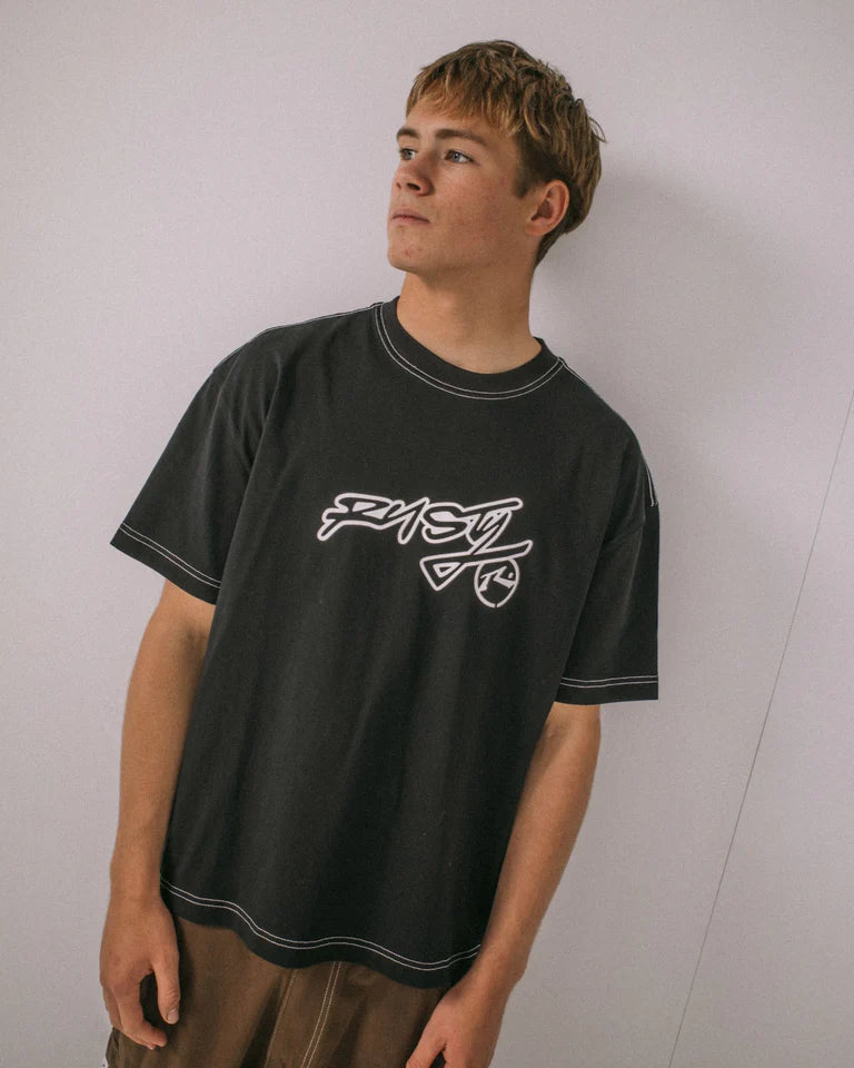 A must-have for anyone searching for men’s cropped t-shirts, boxy graphic tees, or modern Rusty streetwear.