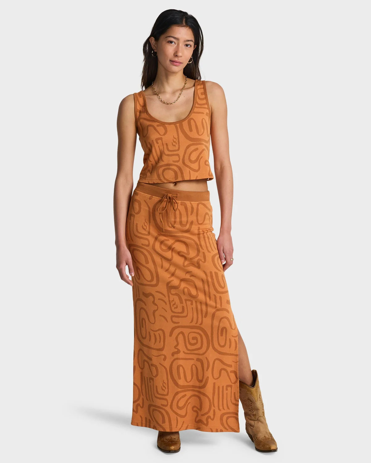 Finished in a vibrant Tangerine colourway, it adds a bold pop of colour to any summer outfit. Perfect for pairing with denim shorts, skirts or linen pants, the Embers Knit Tank is made for beach days, travel and everyday wear.
