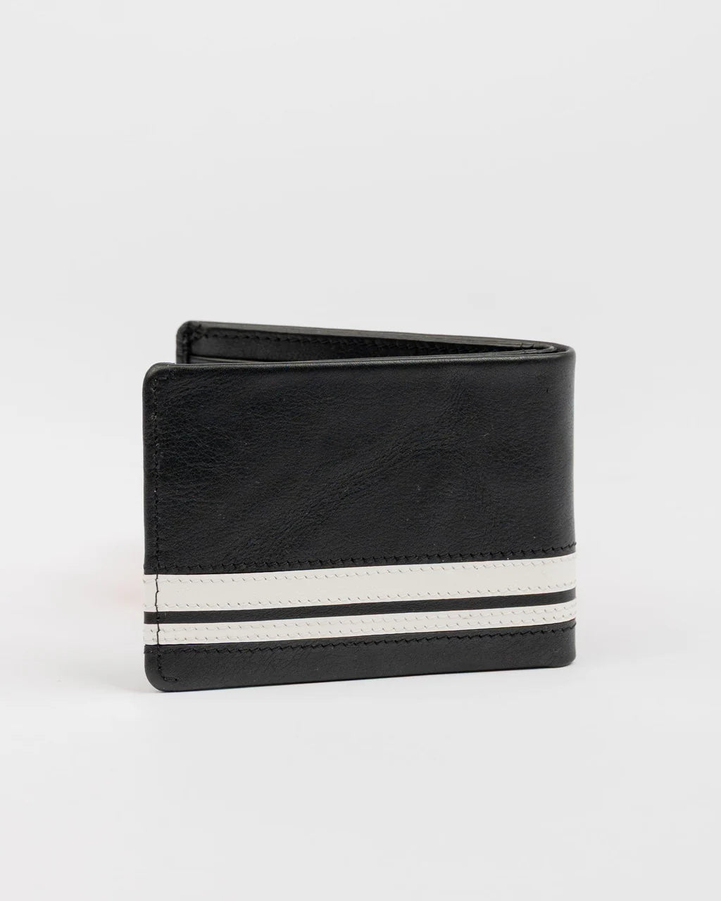 RUSTY WHITE LINES LEATHER WALLET – BLACK
