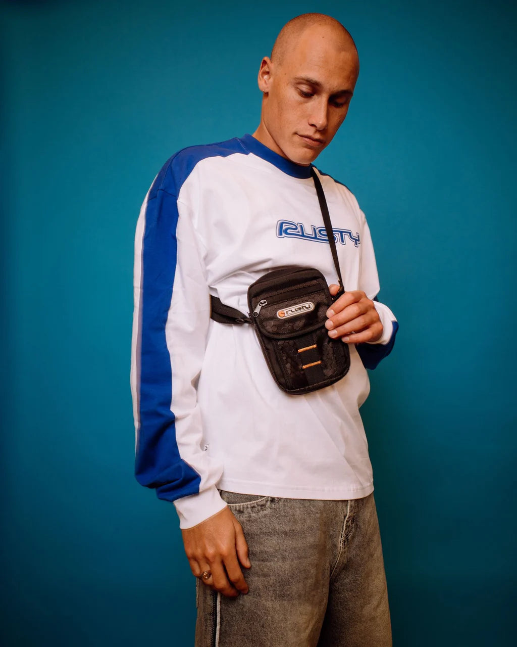 1l Crossbody Bag With Adjustable Crossbody Strap And Rusty Rubber Patch. 100% Polyester Stock 600d (PU Backed)